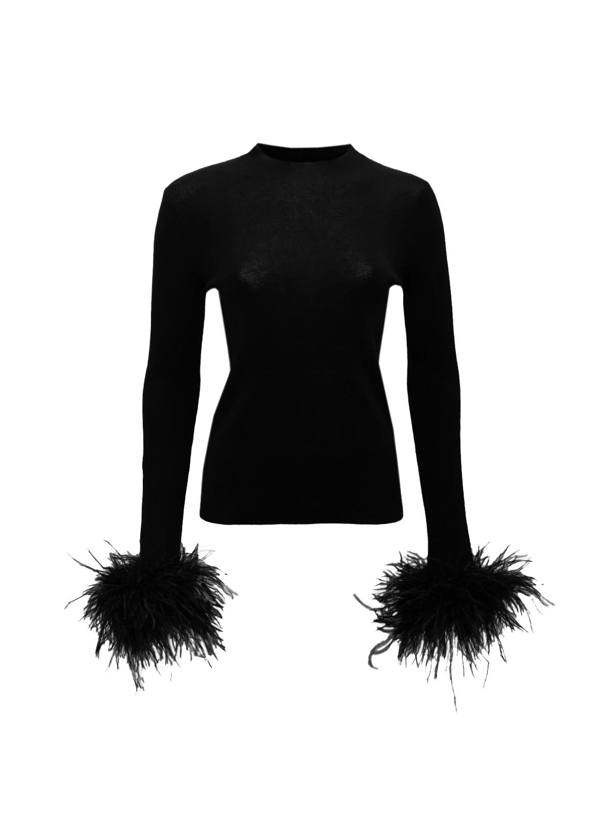 Джемпер NO NAME INT S черный перья на рукавах вискоза