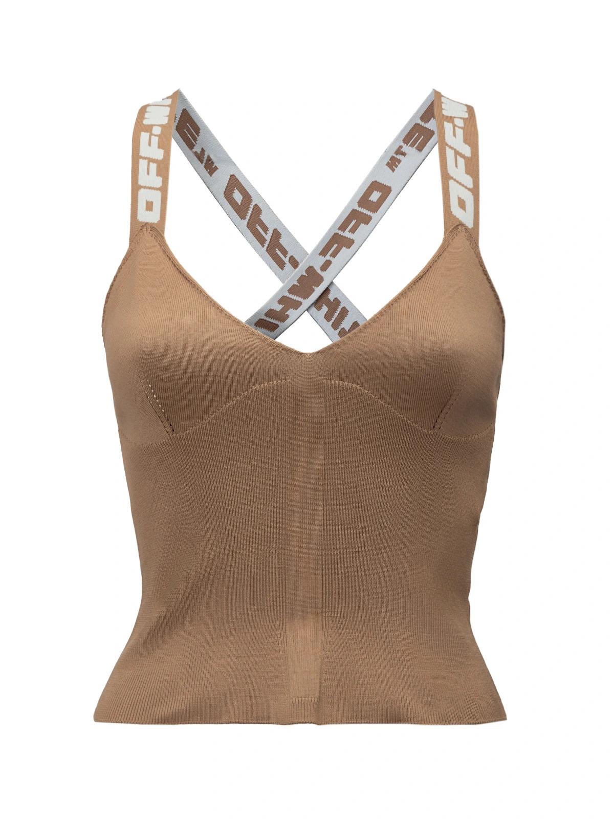 Топ OFF-WHITE IT 40 бежевый лого на лямках вискоза