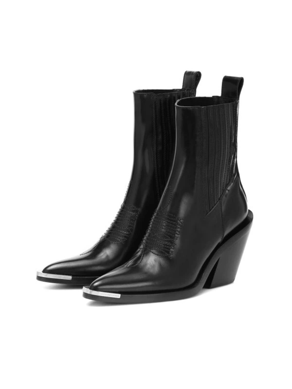 Ботильоны PACO RABANNE EU 38 черные кожа стальной носик казаки