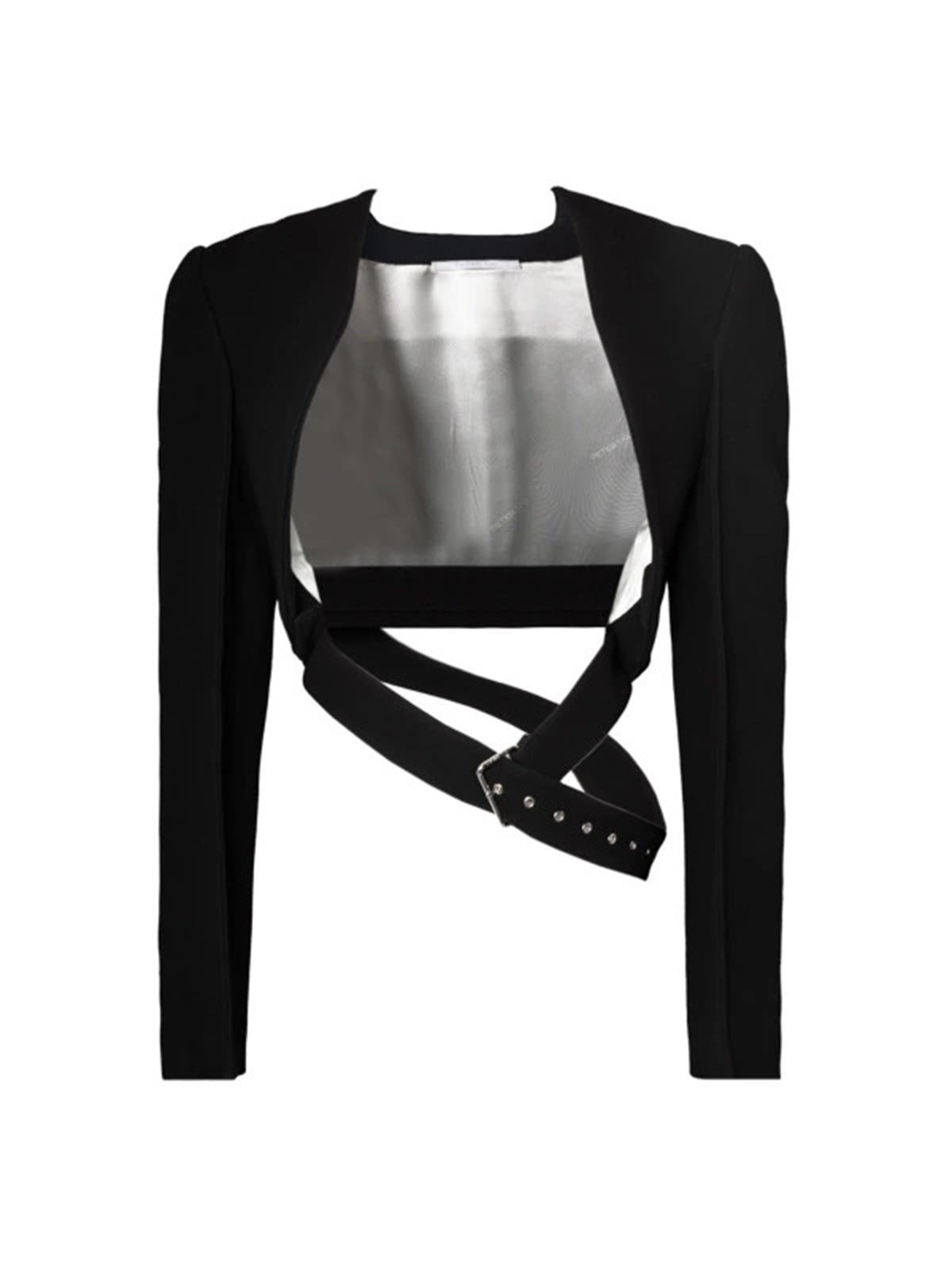 Пиджак PETER DO IT38 черный укороченный+ремень вискоза