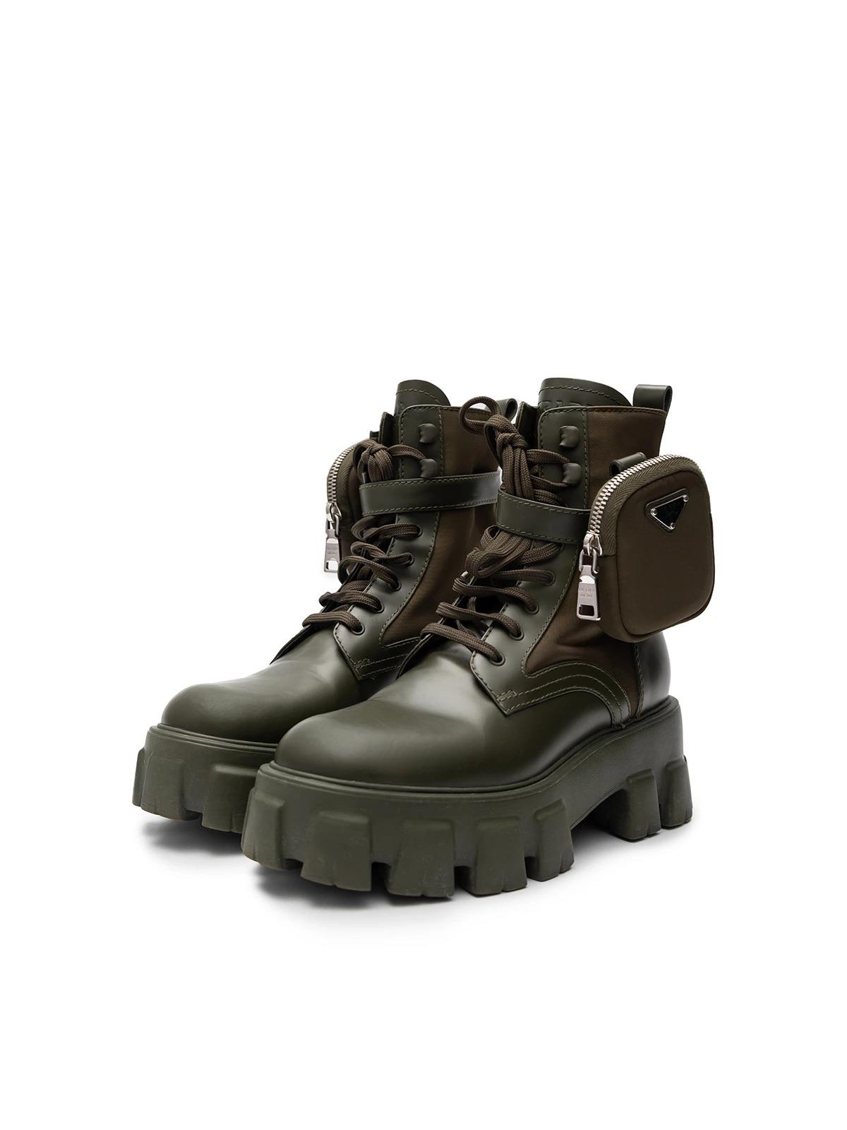 Ботинки PRADA EU 38 зеленые кожа ткань кармашки
