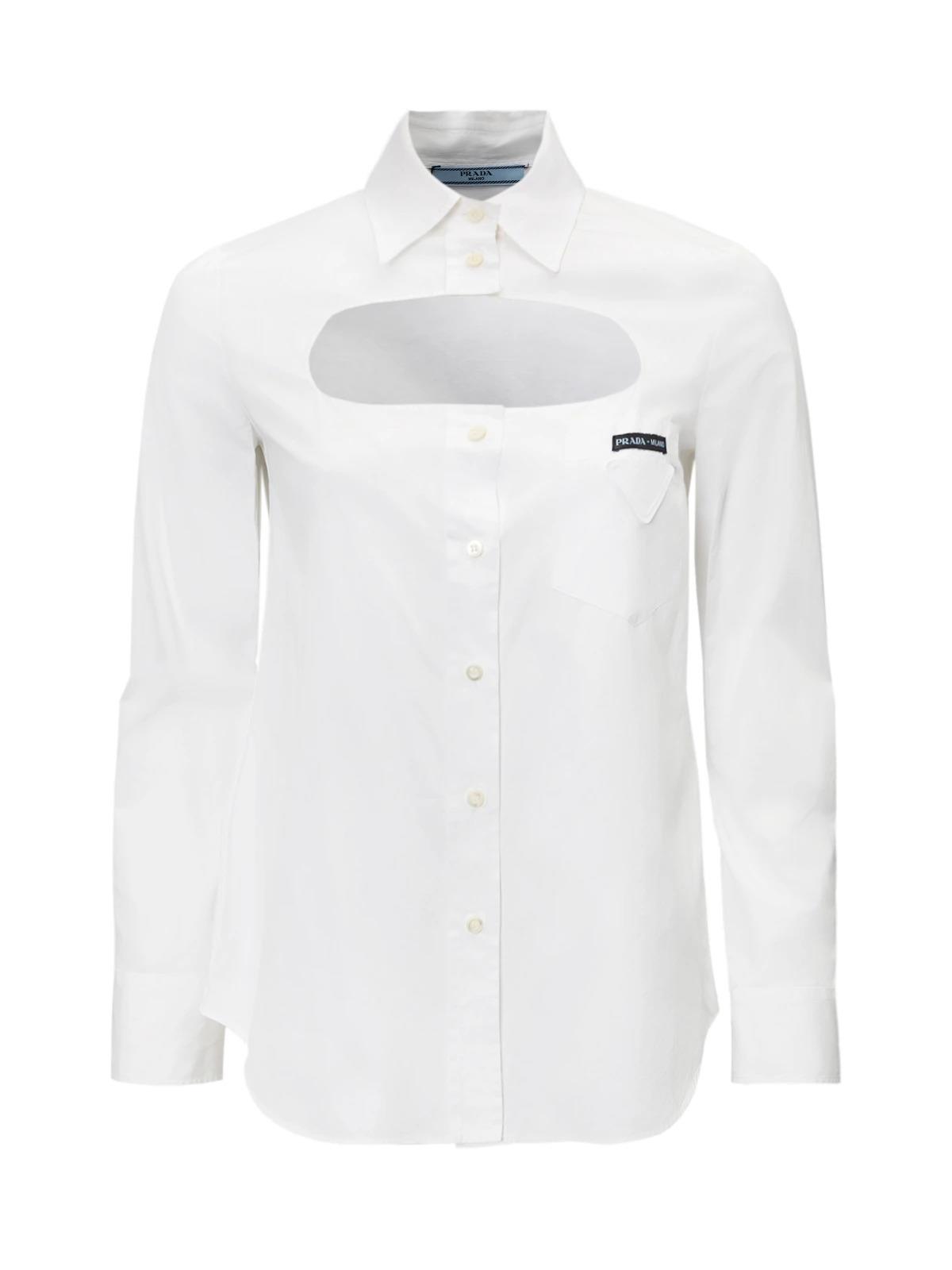Рубашка PRADA 40IT белая хлопок вырез на груди и рукавах