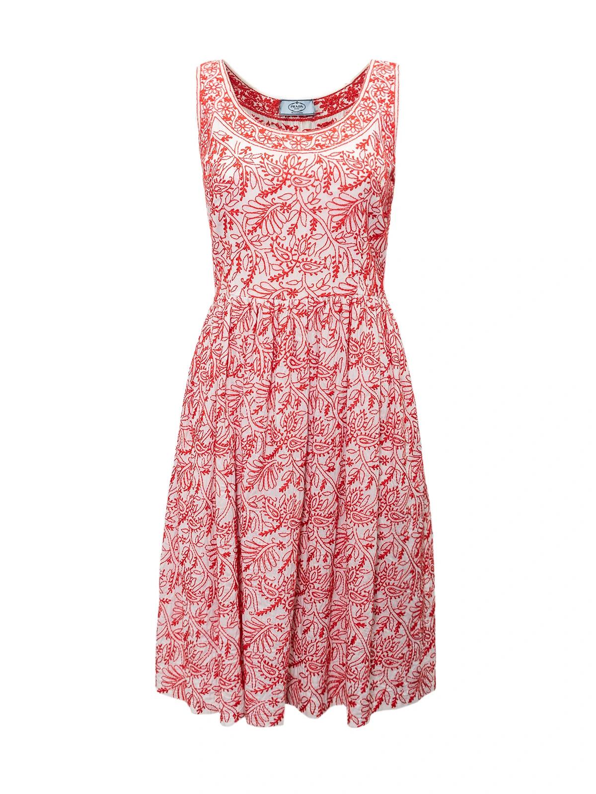 Платье PRADA 42IT белое красная вышивка без рукавов хлопок