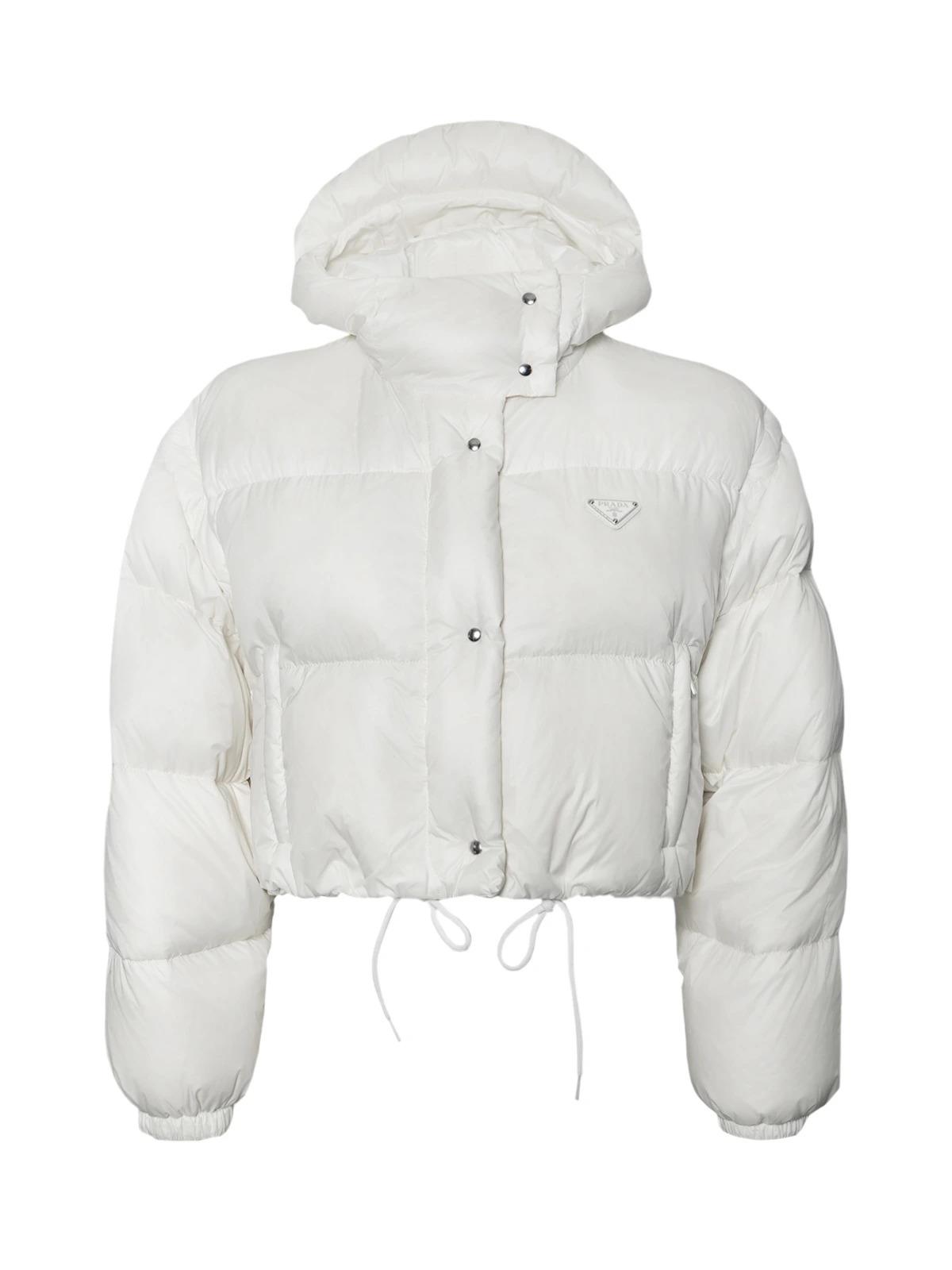Пуховик PRADA IT 40 белый укороченный с капюшоном полиэстер пух кофр