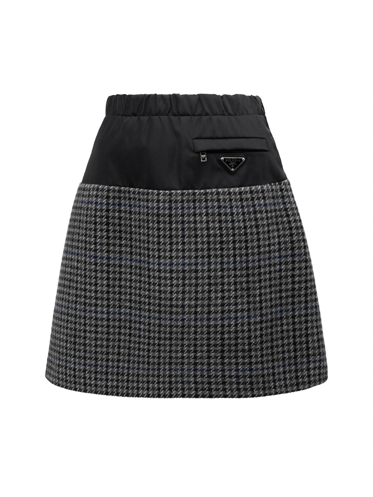 Юбка PRADA IT 40 черная полиэстер внизу серая гусиная лапка шерсть