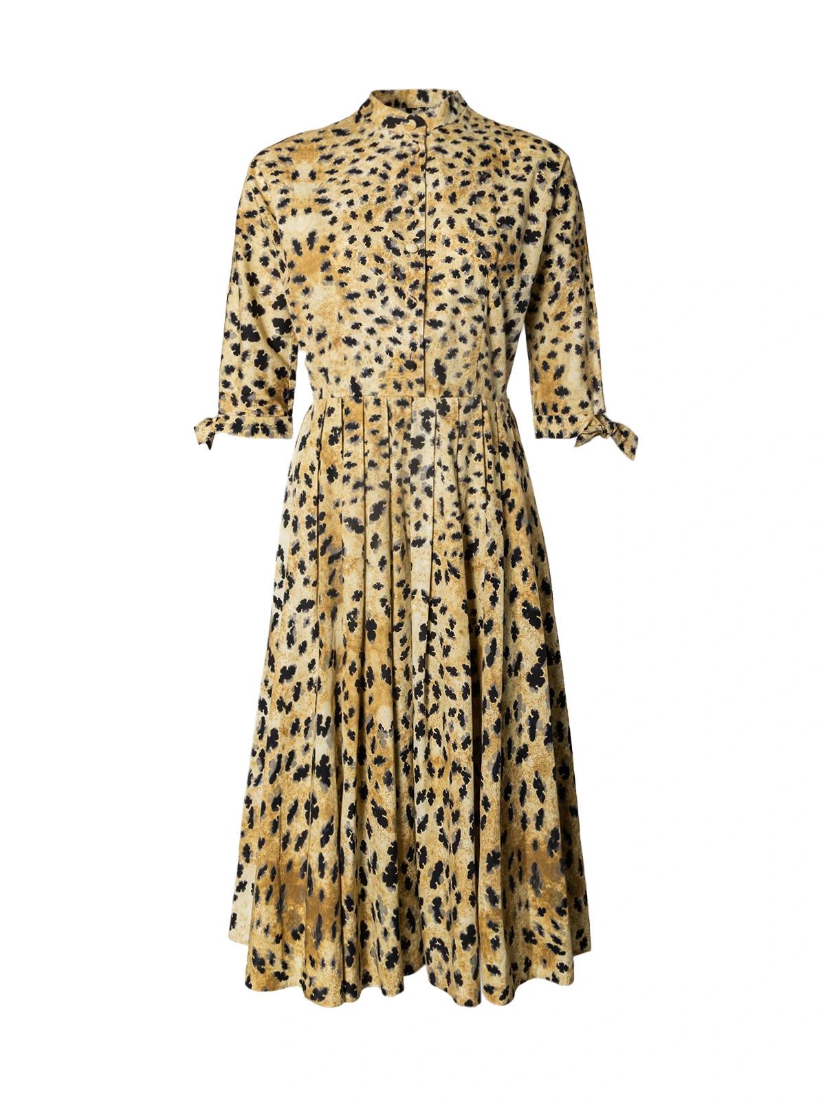 Платье PRADA IT 40 бежевое черный рисунок пуговки рукав 3/4 хлопок