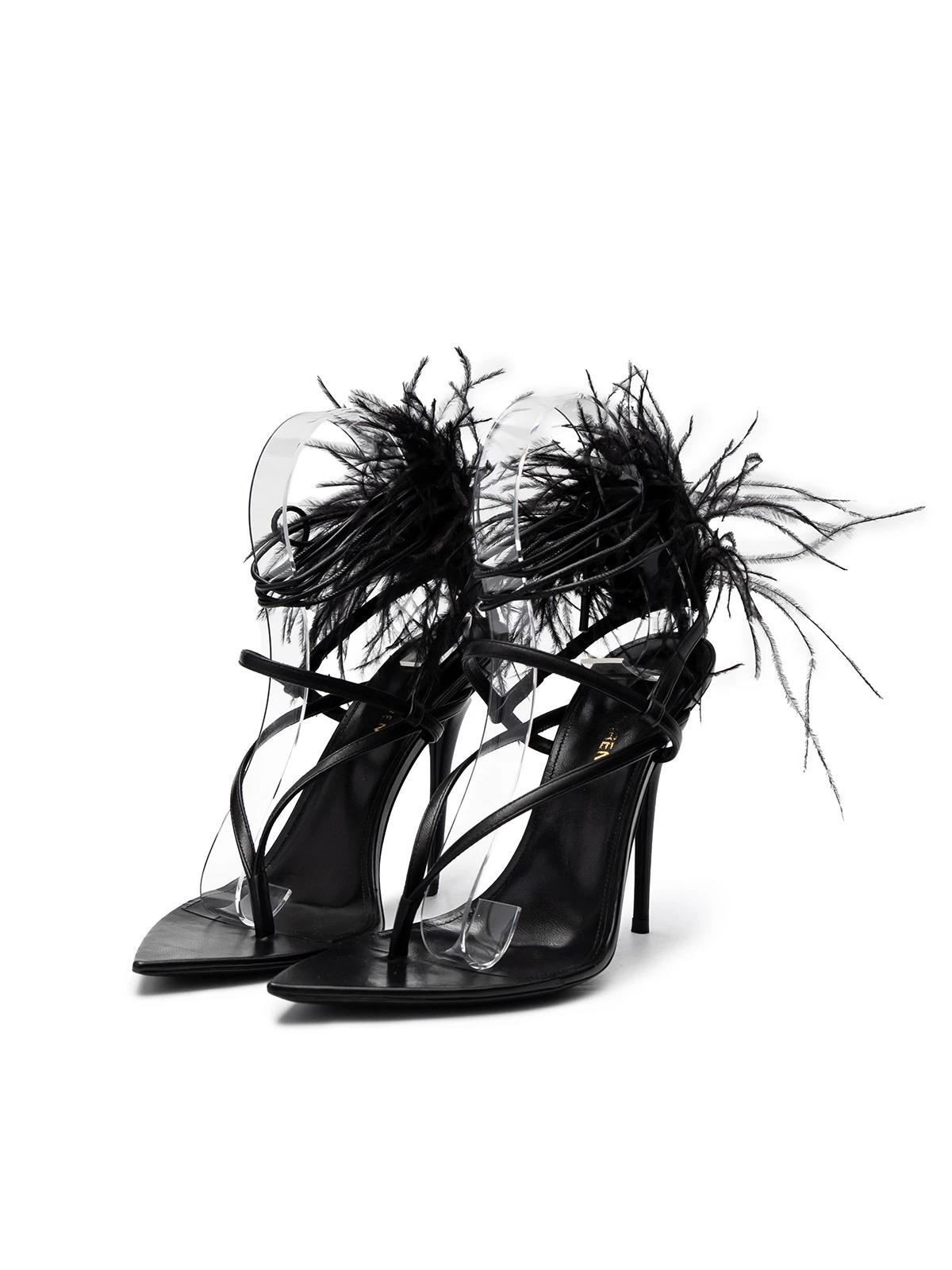 Босоножки SAINT LAURENT EU 37.5 черные кожа перья на пятке коробка
