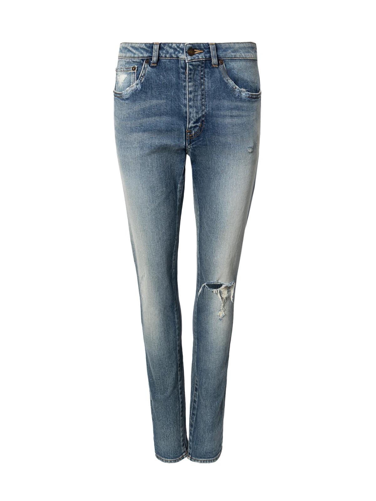 Джинсы SAINT LAURENT 29 синие хлопок дырки Новые