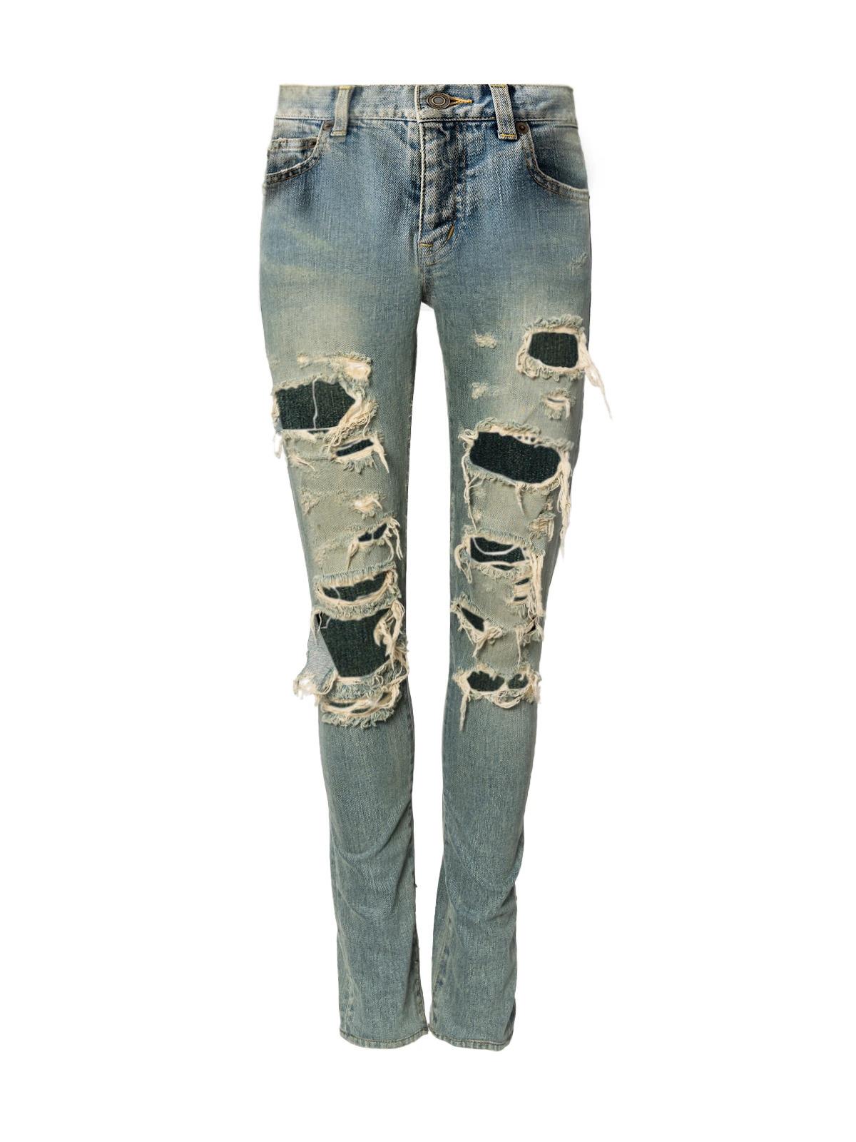 Джинсы SAINT LAURENT 27 голубые с зеленым рваные хлопок
