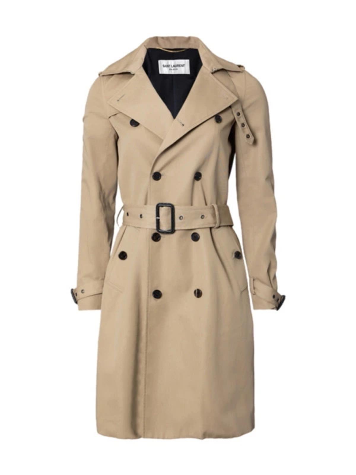 Плащ SAINT LAURENT FR 36 бежевый с поясом полиэстер