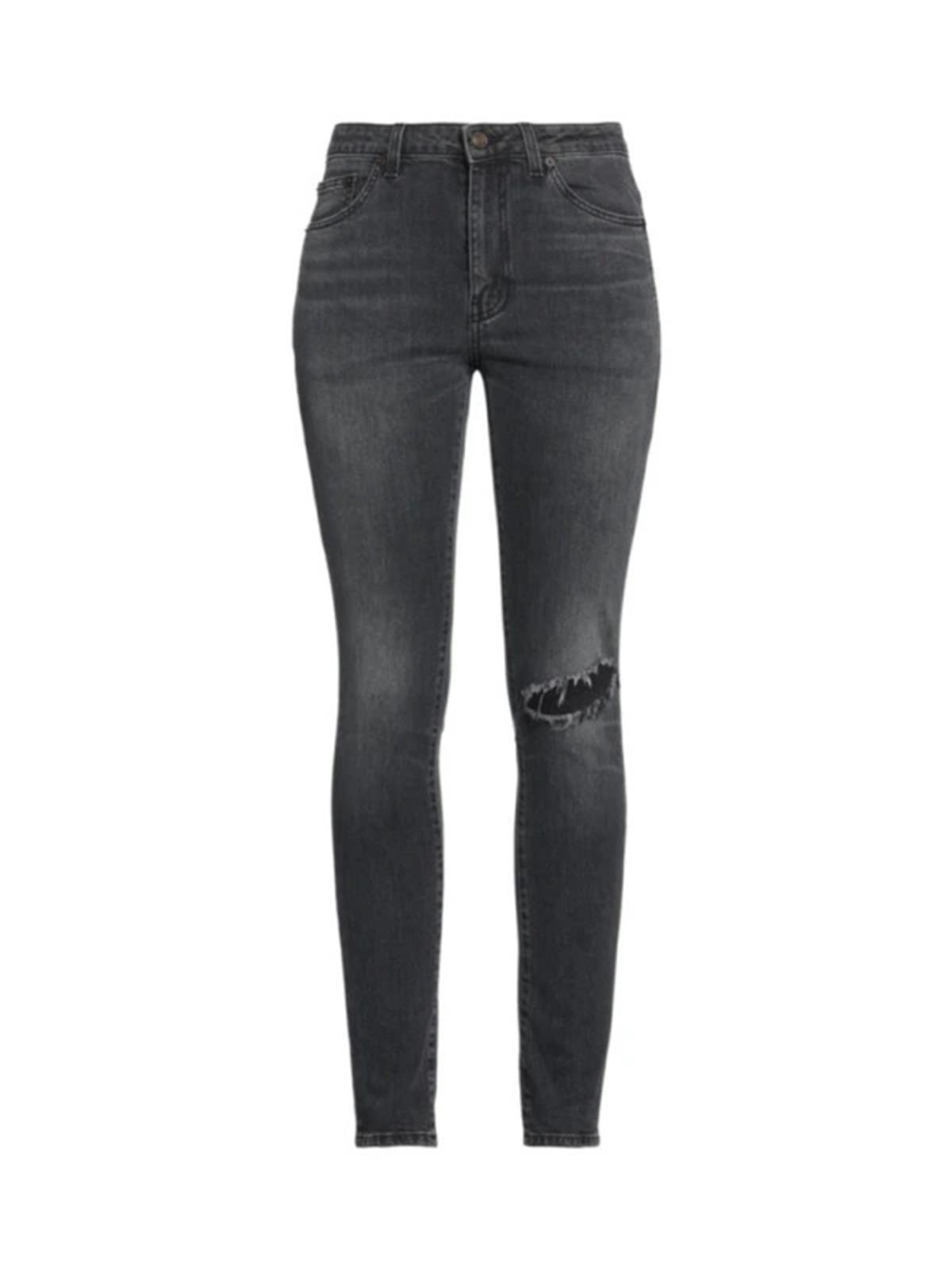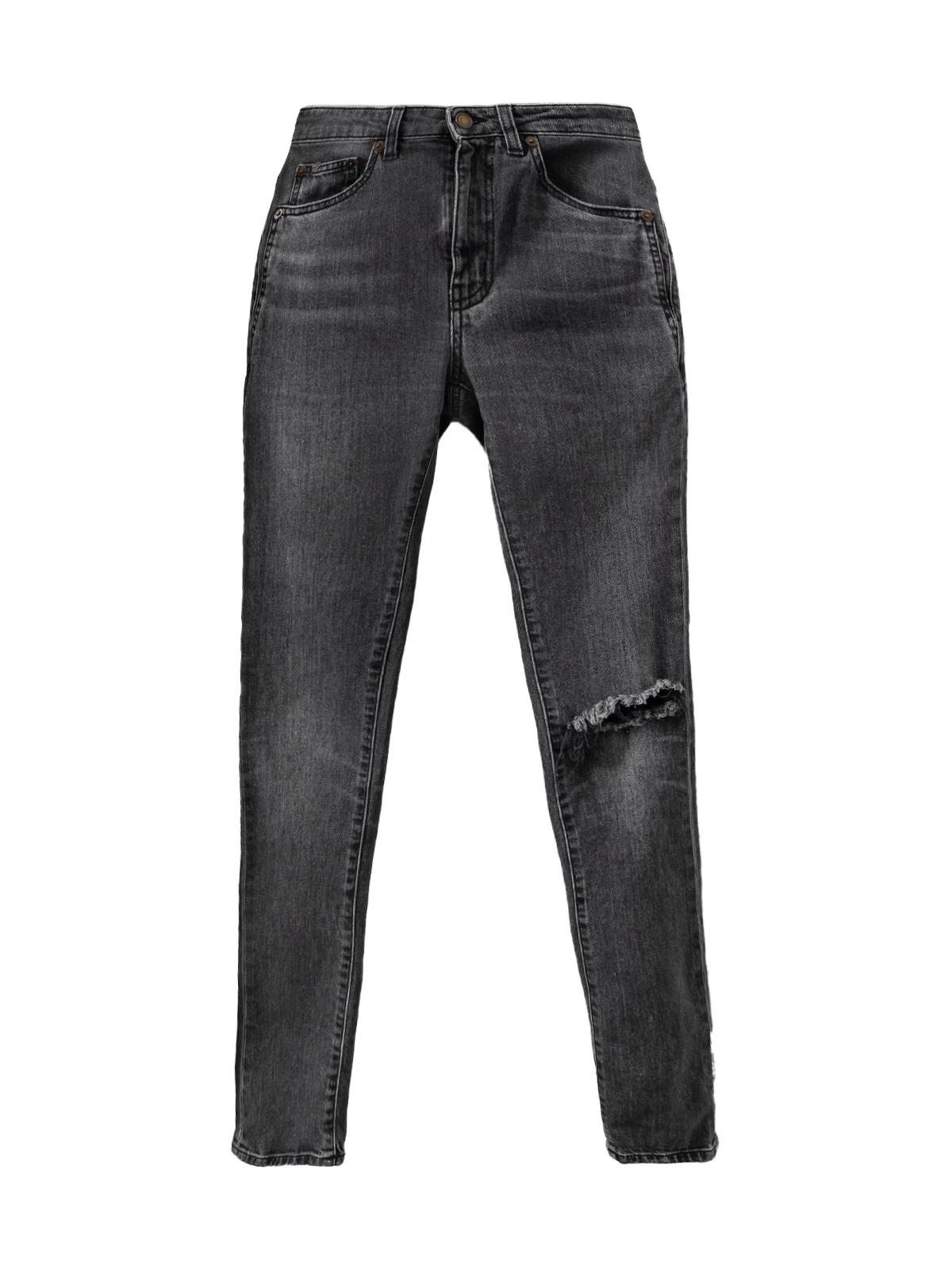 Джинсы SAINT LAURENT 24 серые узкие разрез на коленке хлопок