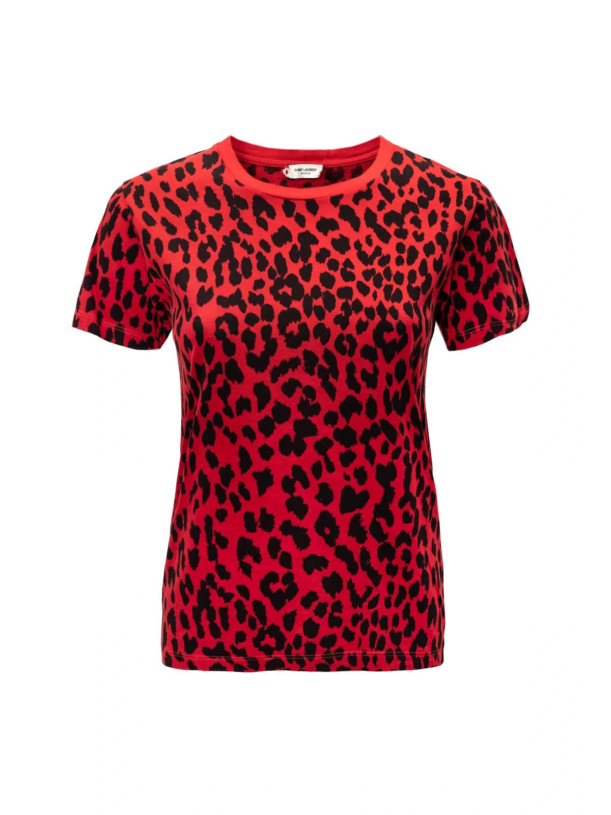 Футболка SAINT LAURENT S розовая черное лео хлопок