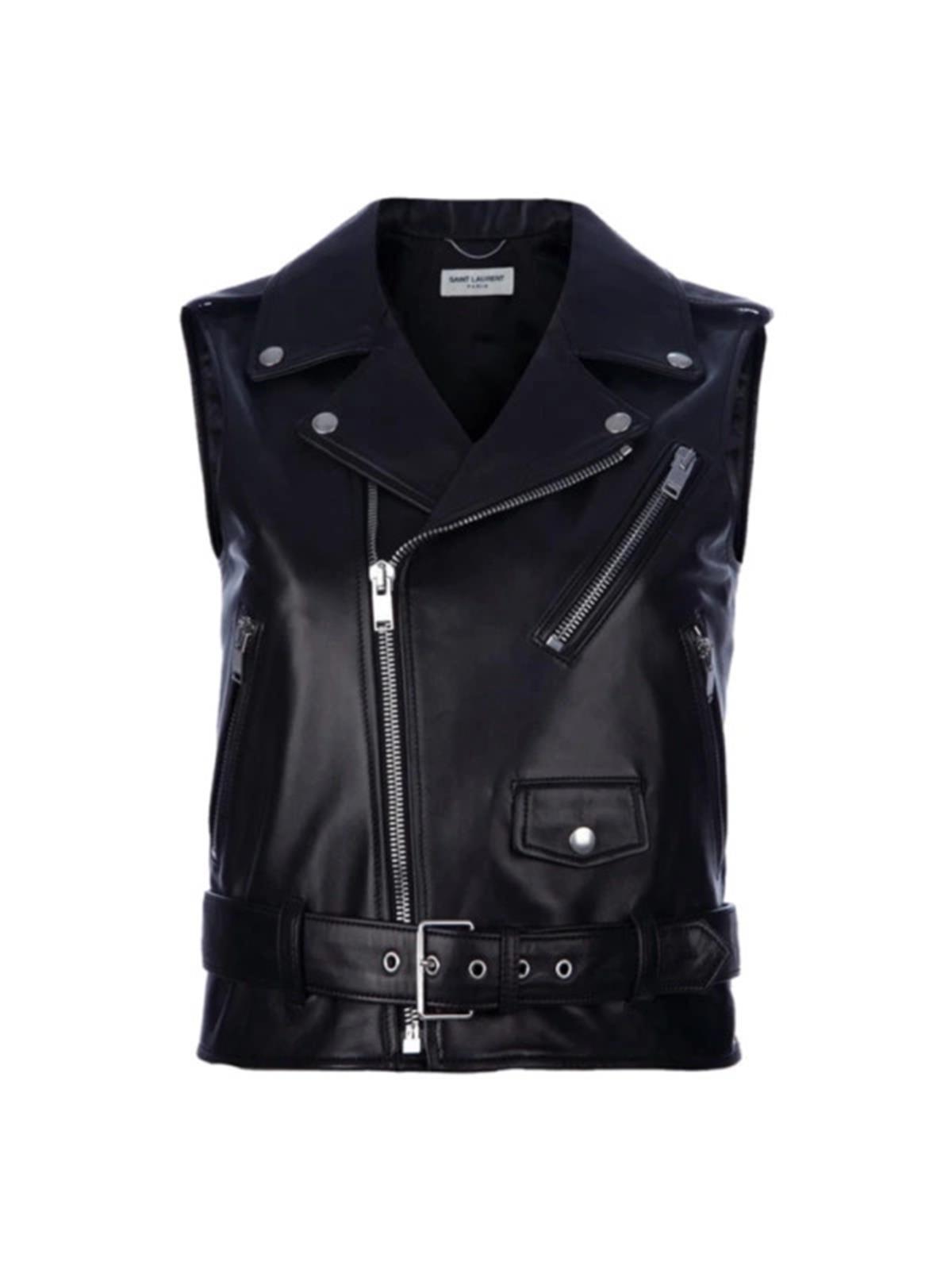 Жилет SAINT LAURENT 40FR кожа черная серебр молнии
