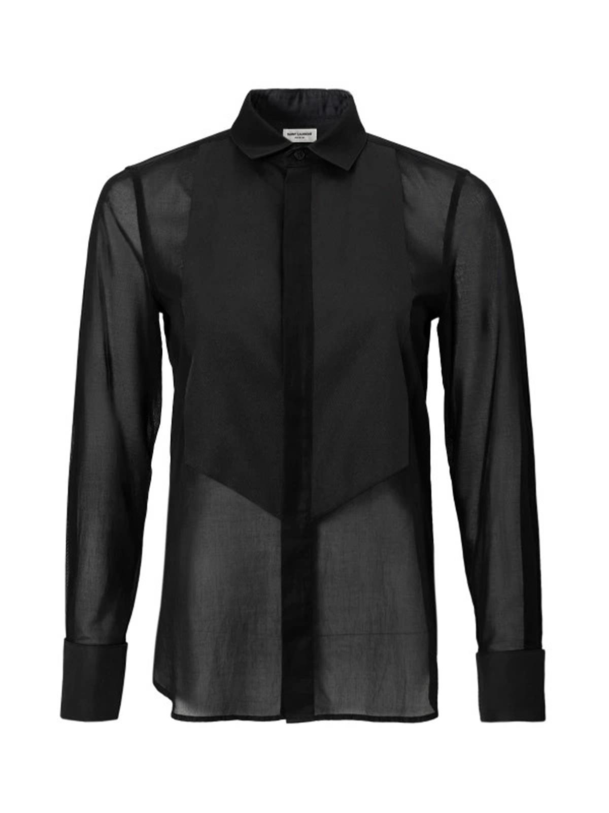 Рубашка SAINT LAURENT FR 38 черная хлопок спереди вставки золотые запонки