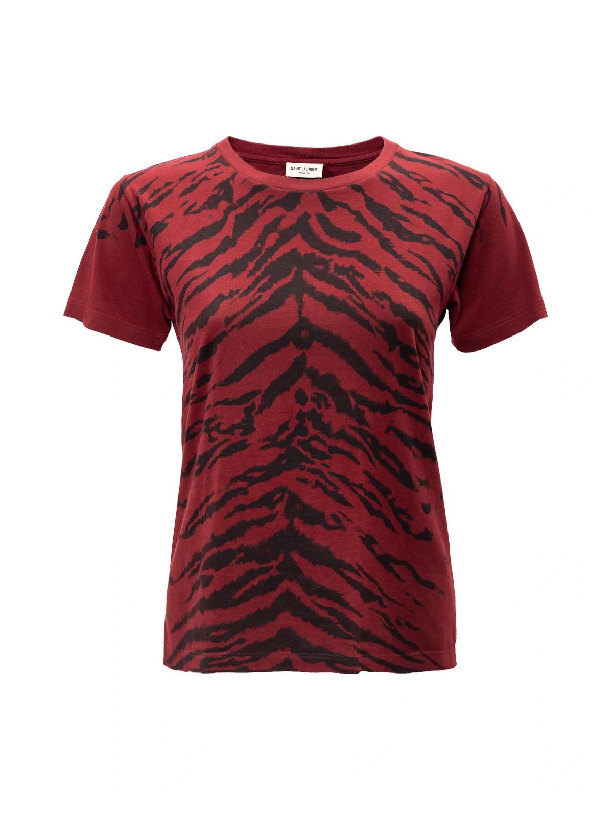 Футболка SAINT LAURENT INT S красная хлопок черные ряби