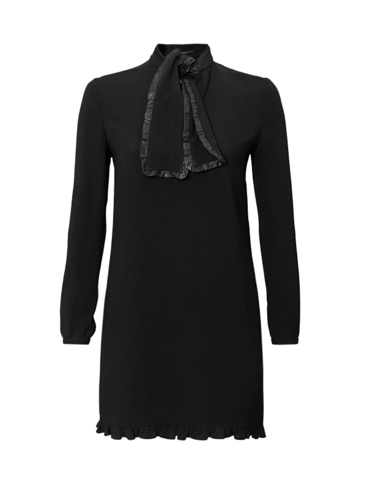 Платье SAINT LAURENT FR 36 черное шерсть с бантом кожаная оконтовка