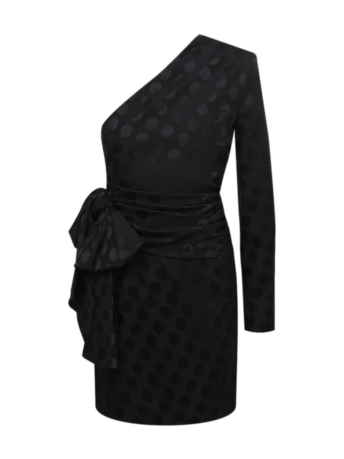 Платье SAINT LAURENT FR 36 черное на одно плечо круги шелк