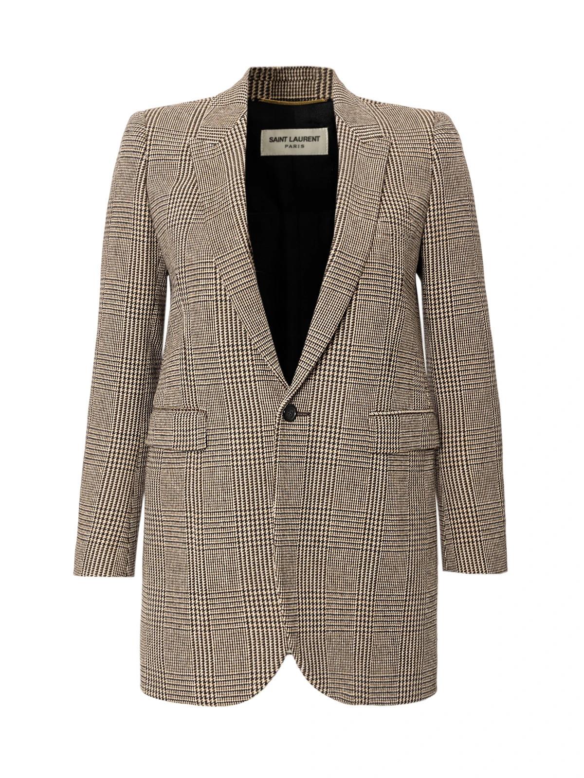 Пиджак SAINT LAURENT FR 36 коричневый клетка шерсть