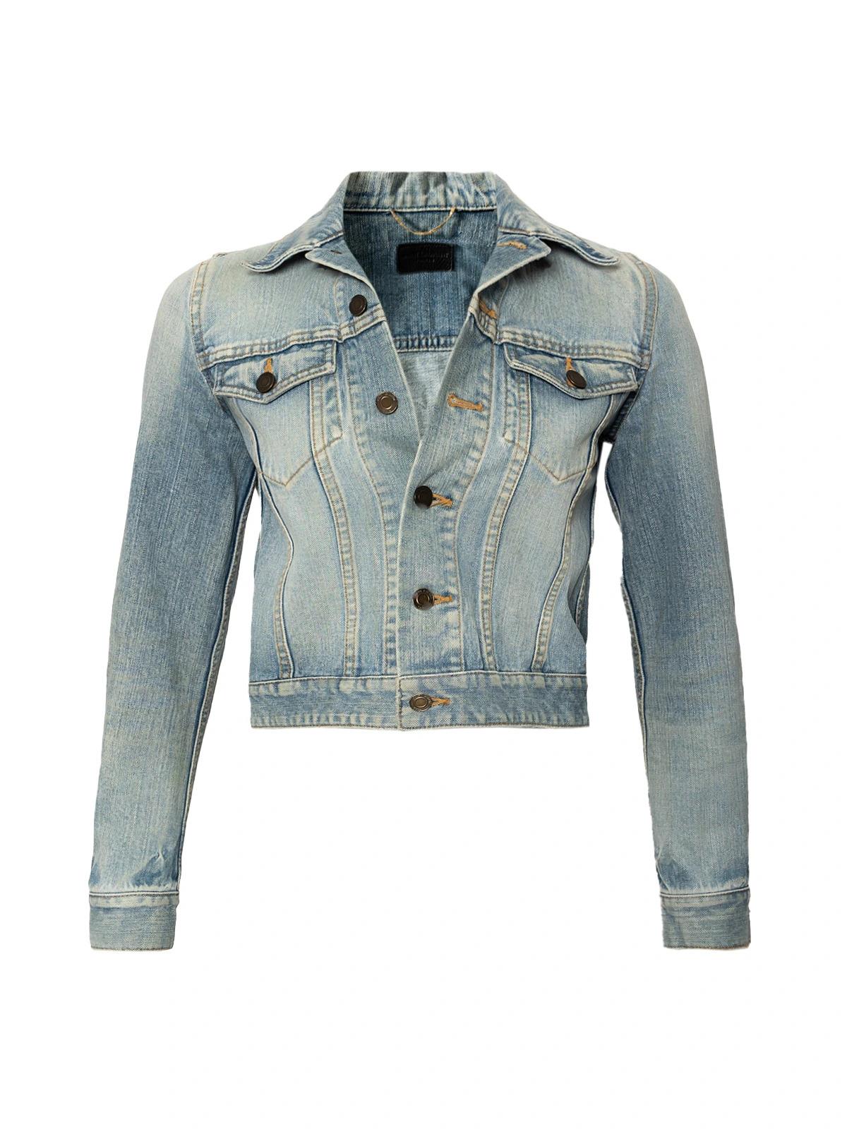Куртка SAINT LAURENT INT S голубая джинса нашивки на спине хлопок