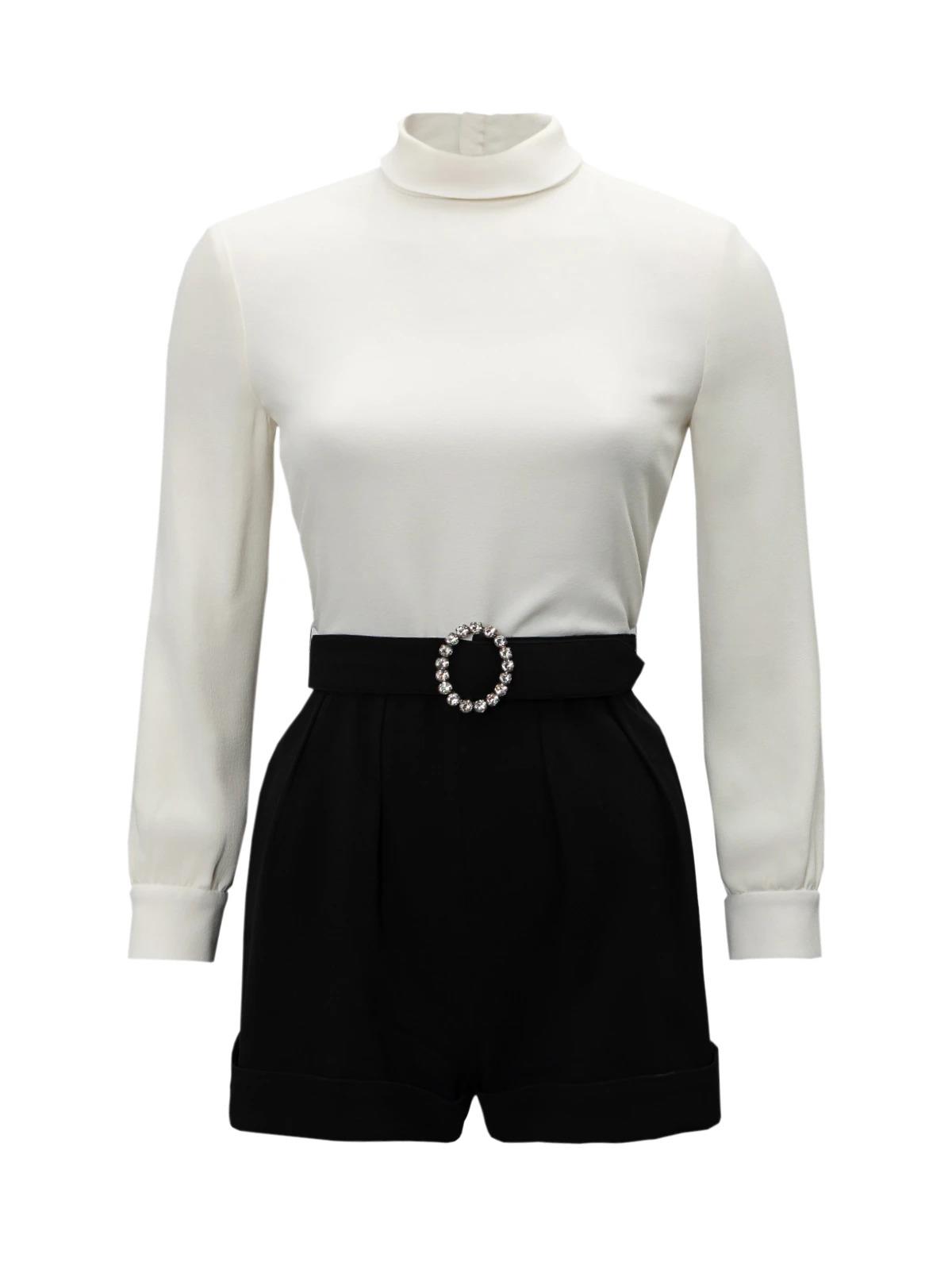 Комбинезон SAINT LAURENT FR 34 белый верх черный низ пояс с пряжкой камни вискоза