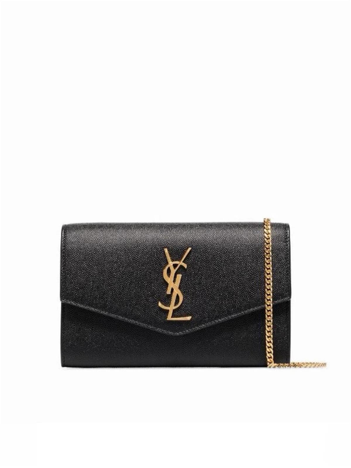 Сумка SAINT LAURENT INT S черная золотое лого цепочка кожа икра