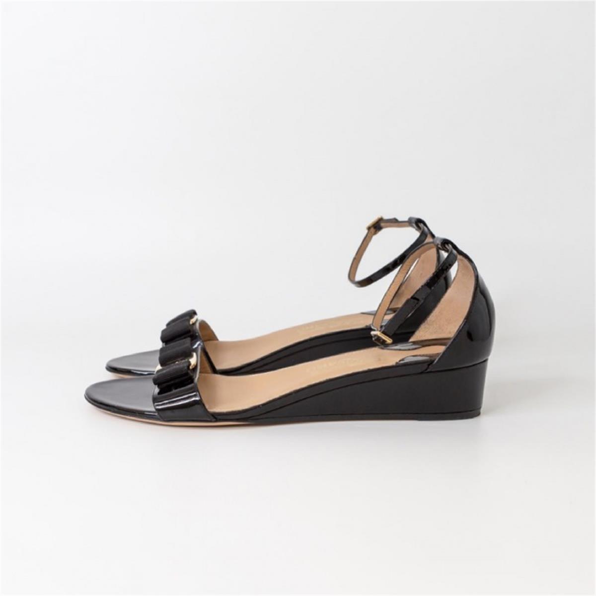 Босоножки SALVATORE FERRAGAMO 39.5 черные лак бант лого Новые