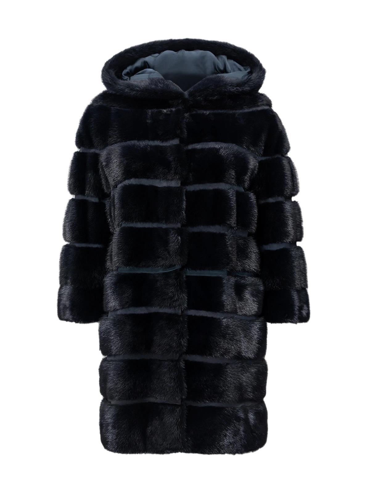 Шуба SIMONETTA RAVIZZA IT 44 синяя мех норка трансформер с капюшоном