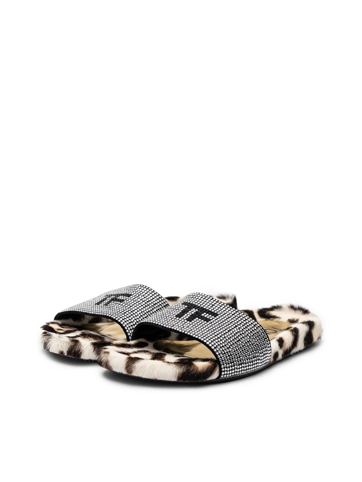 Шлепанцы TOM FORD EU 37 черные кожа серебряные стразы мех пони