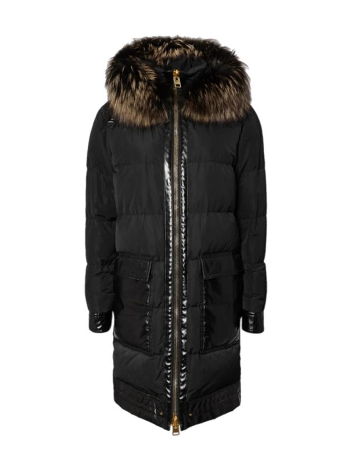 Пуховик TOM FORD 44IT черный полиэстер хлопок купра удлиненный капюшон мех карманы кожда