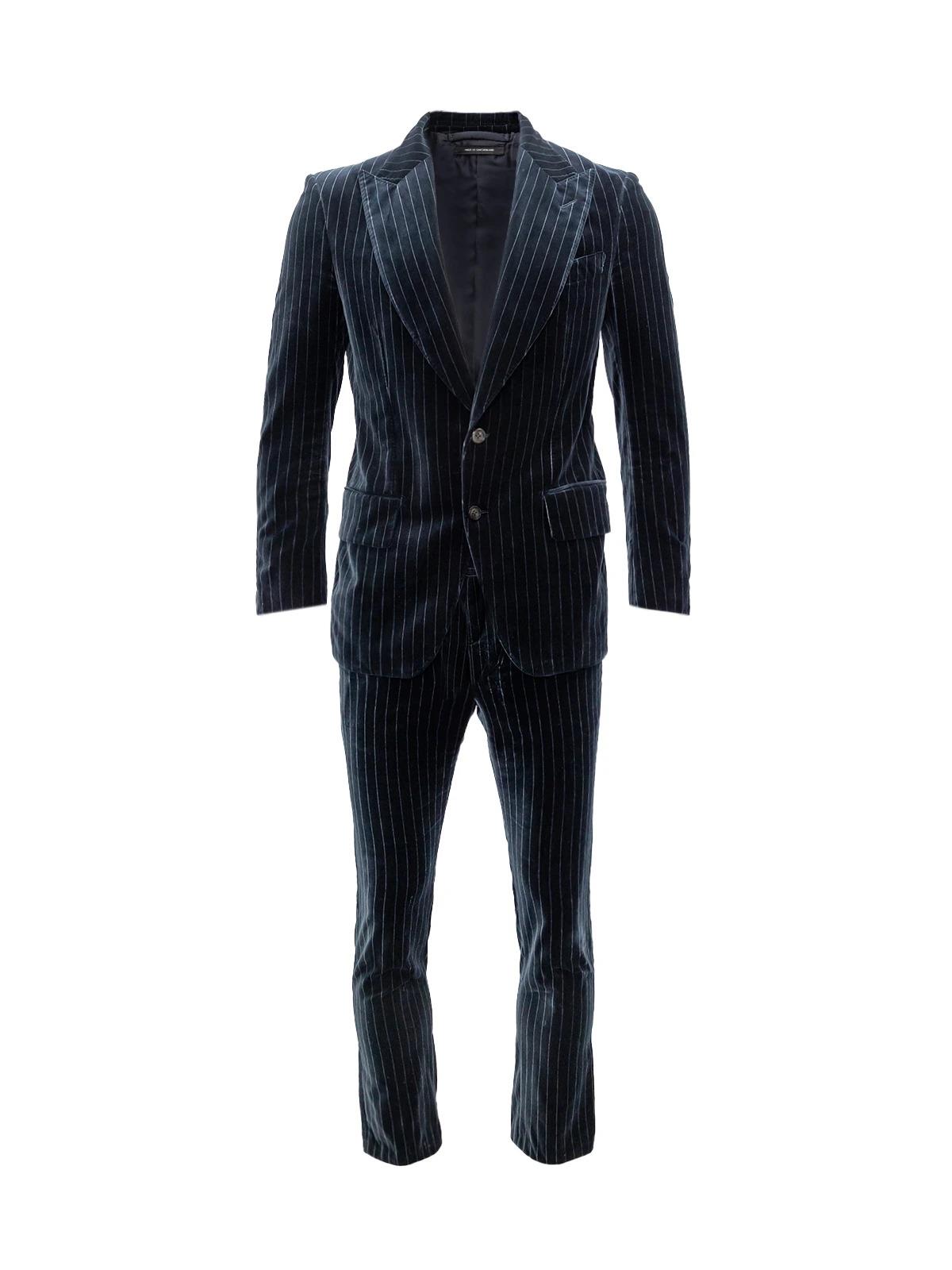 Костюм TOM FORD IT 50 синий бархат в полоску жакет брюки хлопок мужской