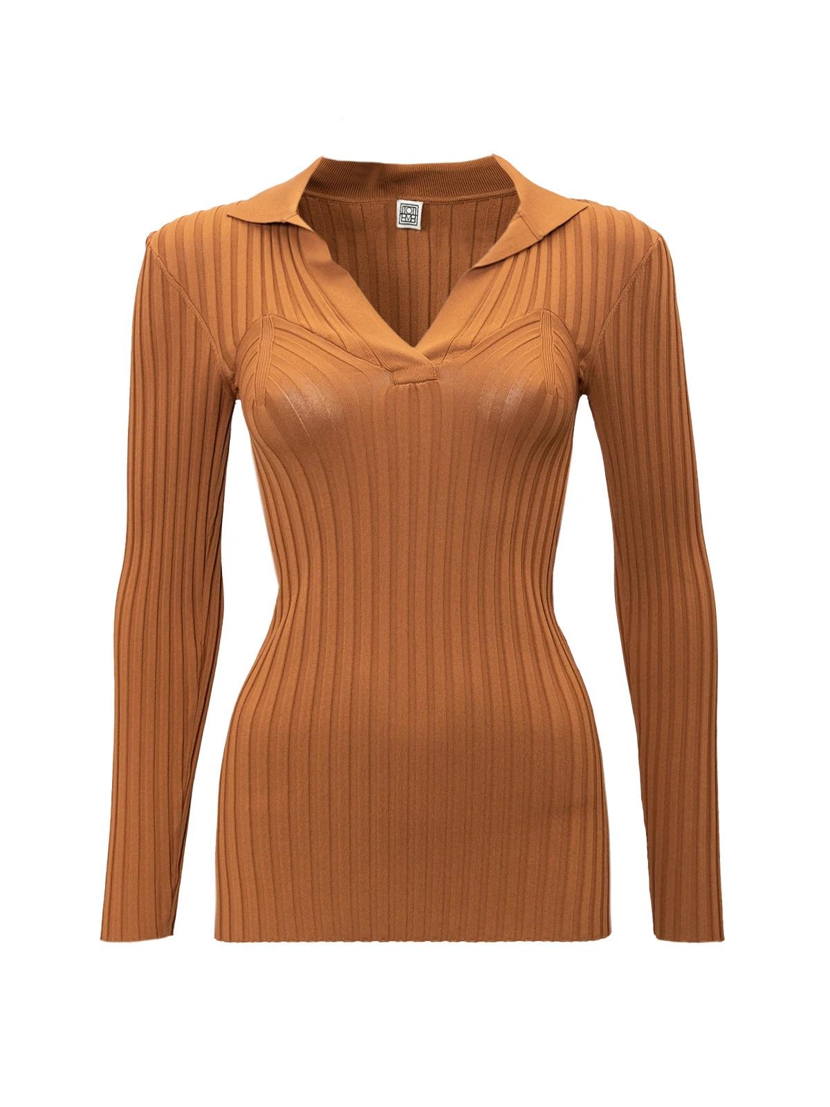 Джемпер TOTEME XS коричневый полиэстер ворот вырез