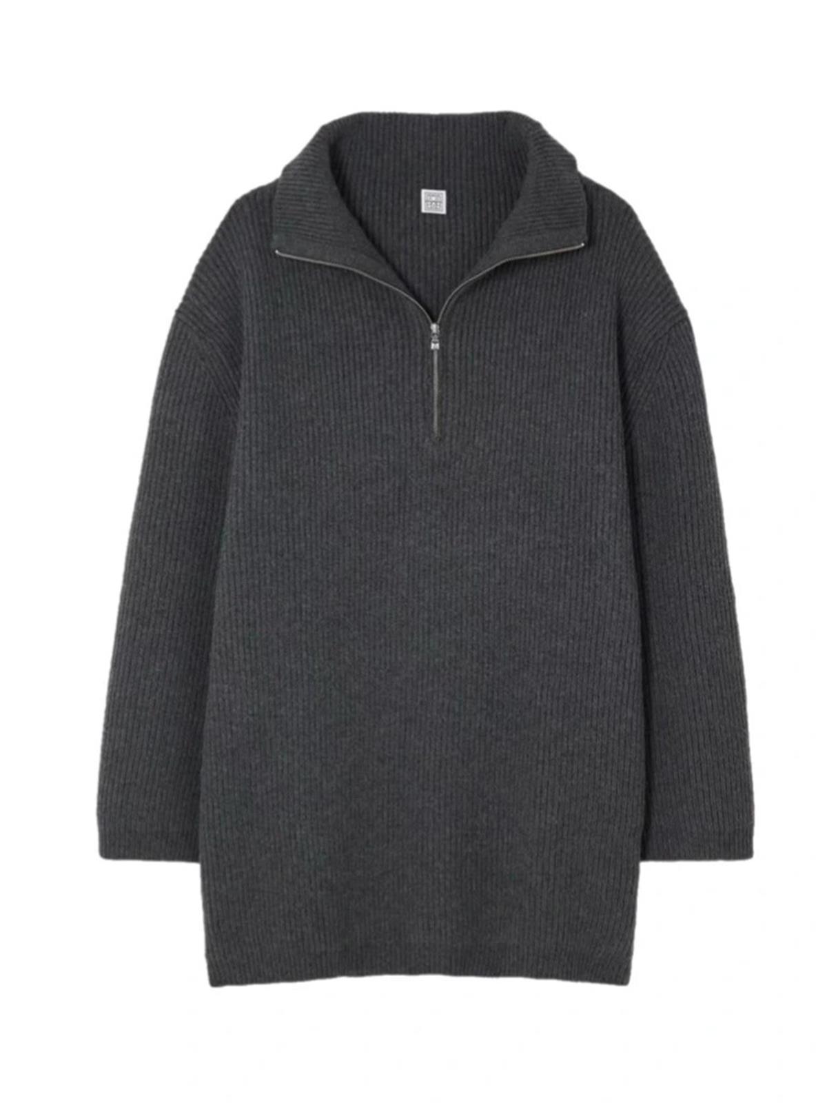 Джемпер TOTEME 32FR серый молния на горловине шерсть