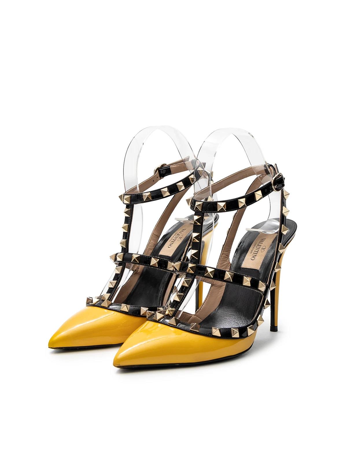 Туфли VALENTINO 39 желтые лак черный кант шипы открытая пятка +коробка
