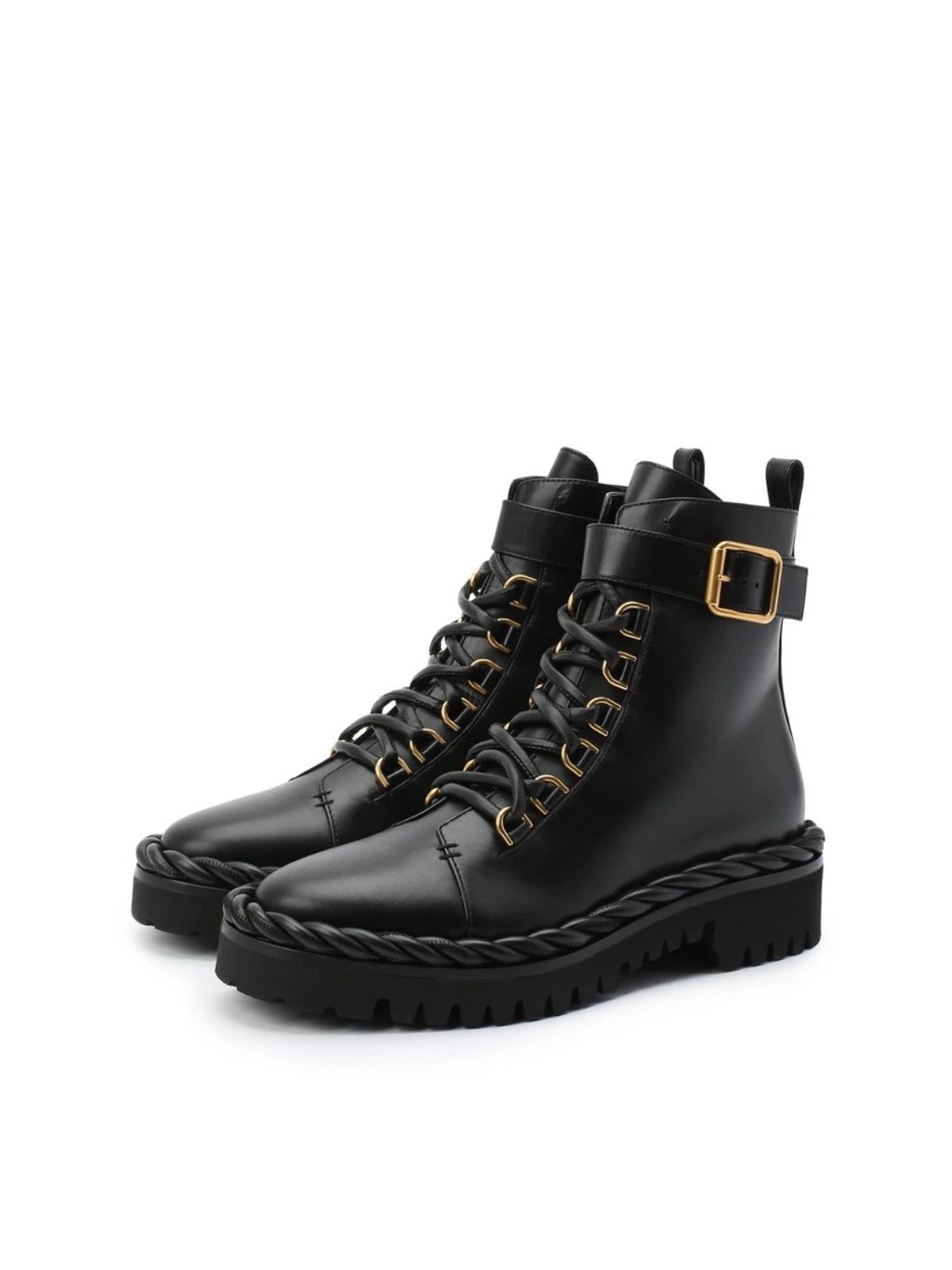 Ботинки VALENTINO EU 39.5 черные кожа плетеный кант золотая фурнитура