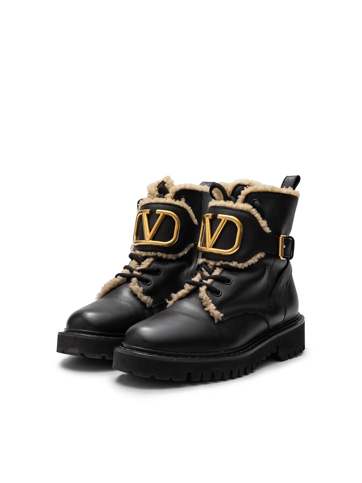 Ботинки VALENTINO EU 36 черные кожа внутри белая овчина золотое лого