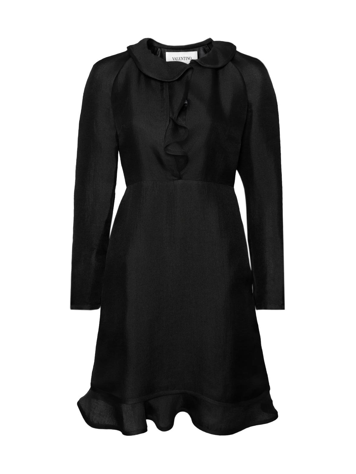 Платье VALENTINO 6 черное midi спереди рюши шелк