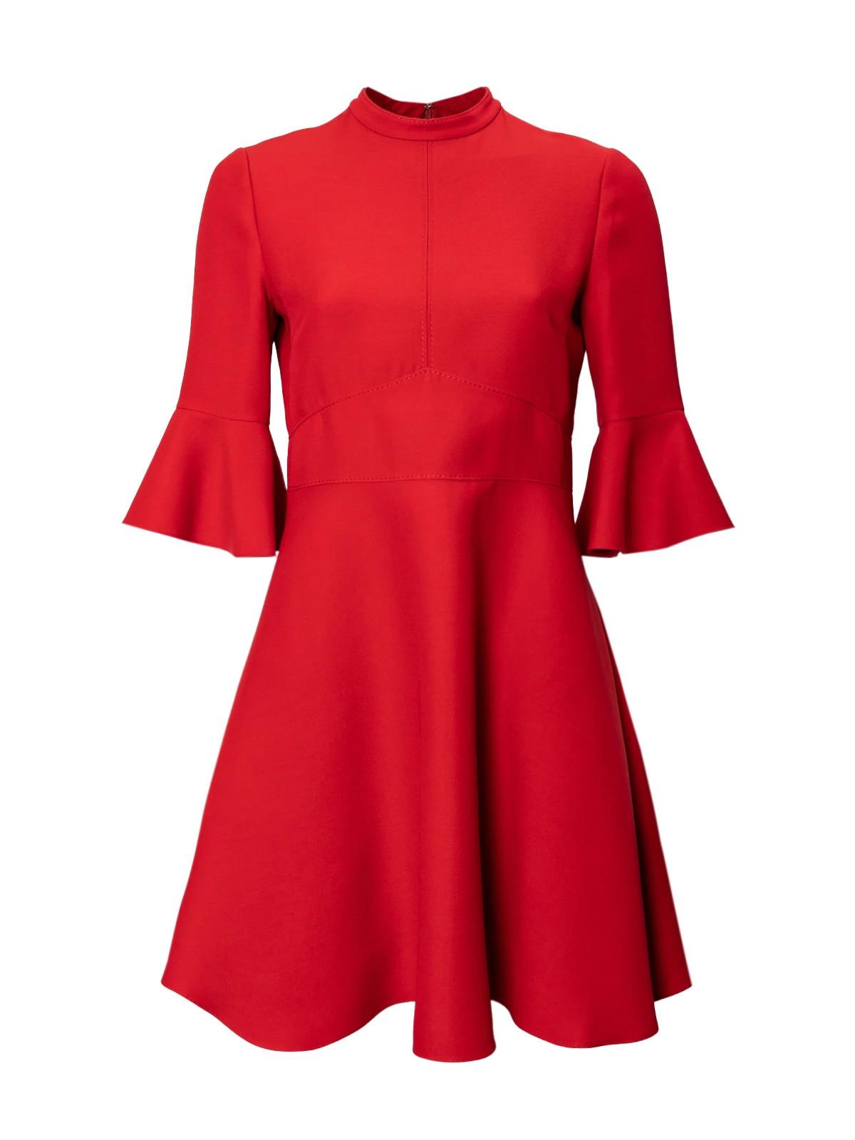 Платье VALENTINO 42IT красное рукав 3/4 с воланами шерсть