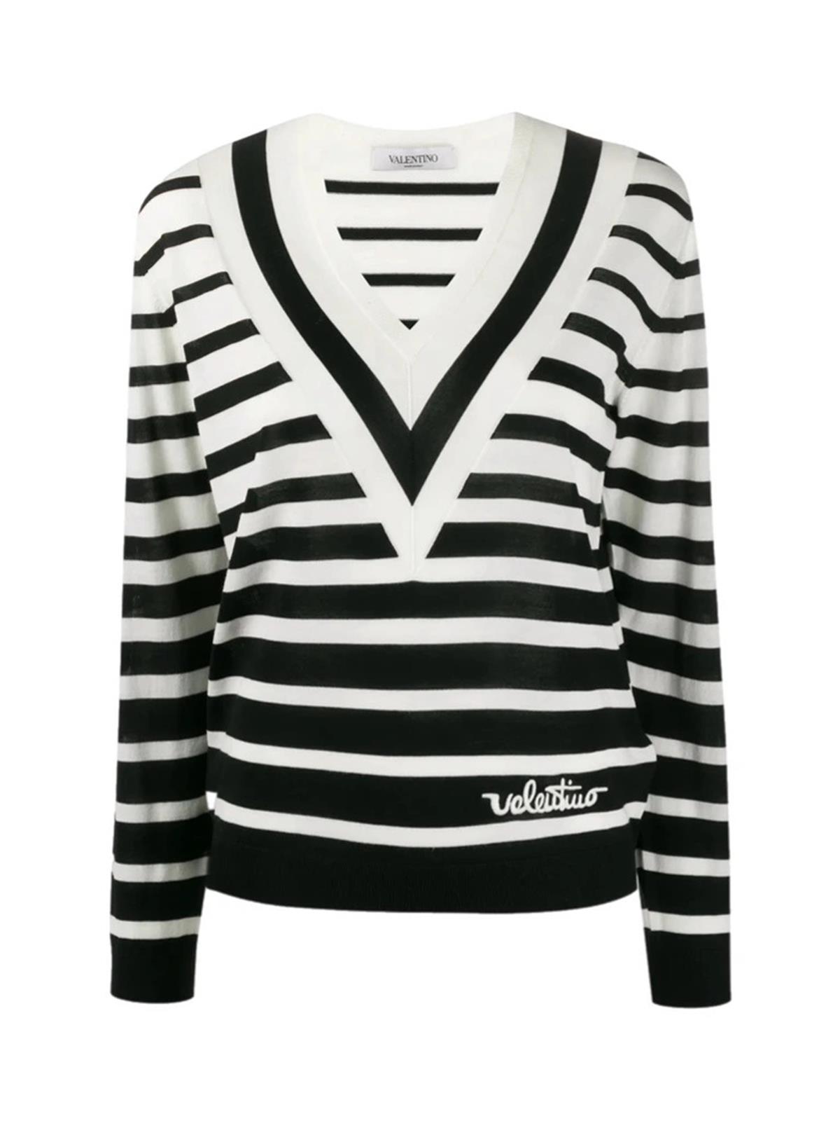 Джемпер VALENTINO INT S белый черная полоска вышитое лого шерсть