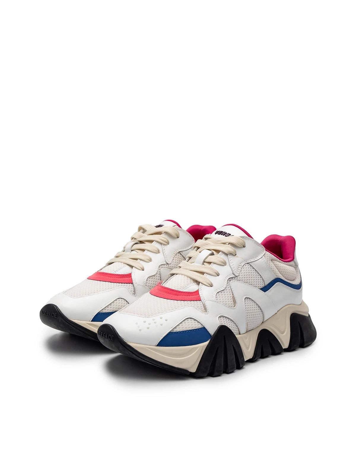 Кроссовки VERSACE EU 40 белые кожа ткань синие розовые вставки