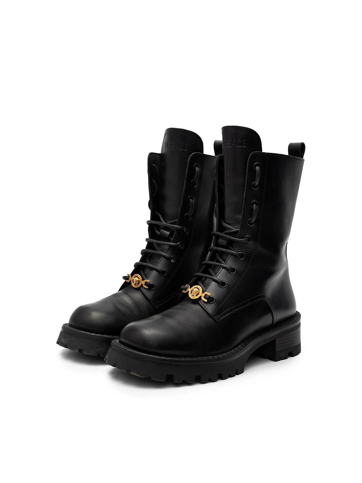 Ботинки VERSACE EU 38 черные кожа шнурки золотое лого