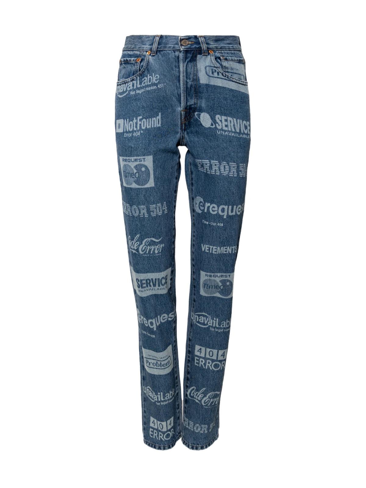 Джинсы VETEMENTS S синие хлопок надписи