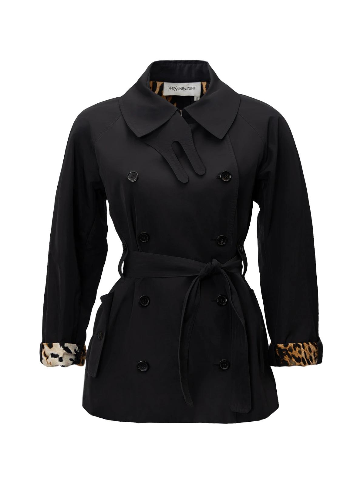 Плащ YVES SAINT LAURENT FR 38 черный укороченный подкладка лео полиэстер