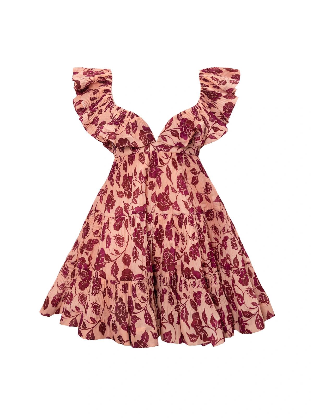Платье ZIMMERMANN 1 розовое цветы волна полиэстер