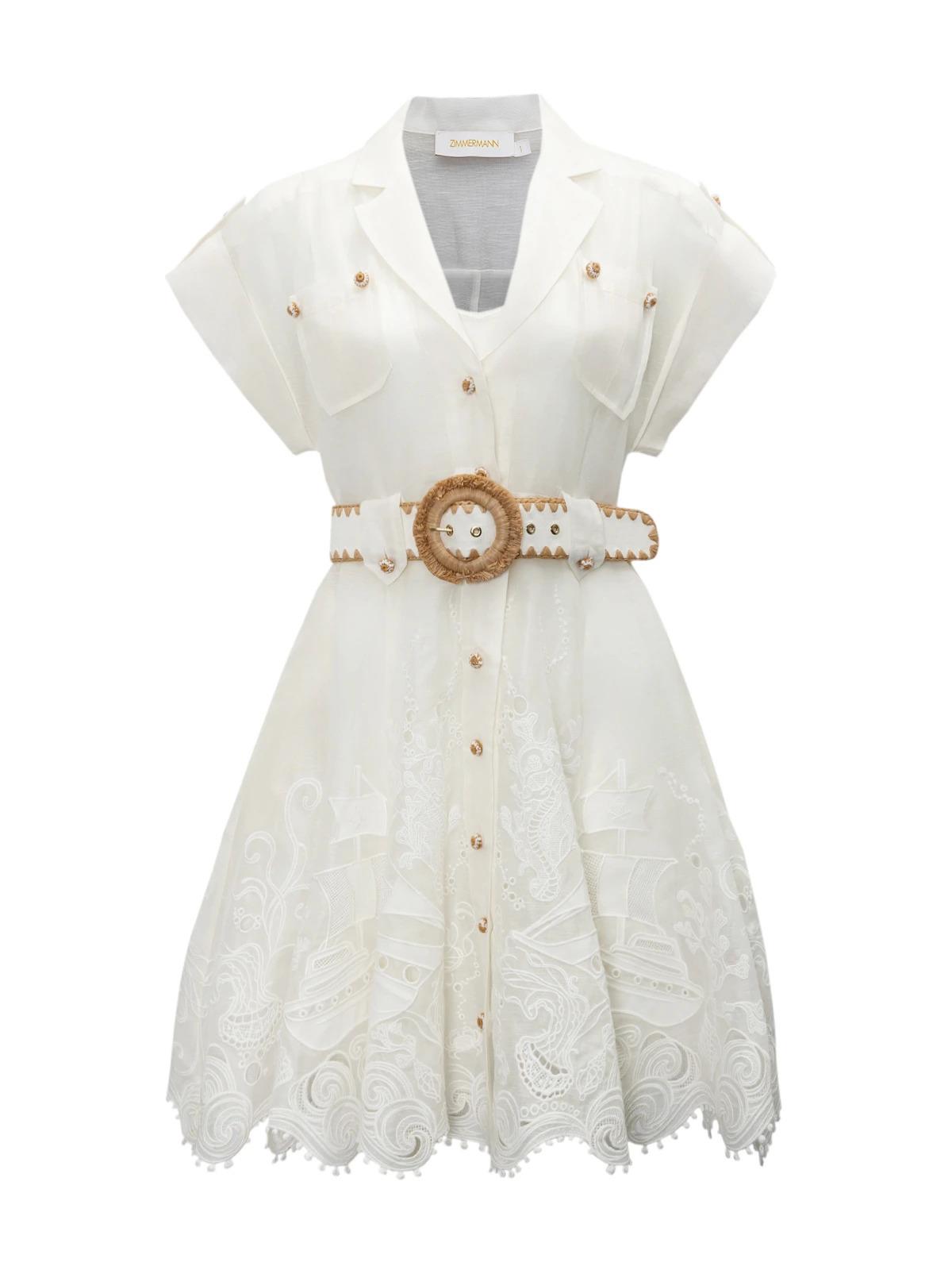 Платье ZIMMERMANN 1 белое бежевая отделка топ подъюбник пояс лен