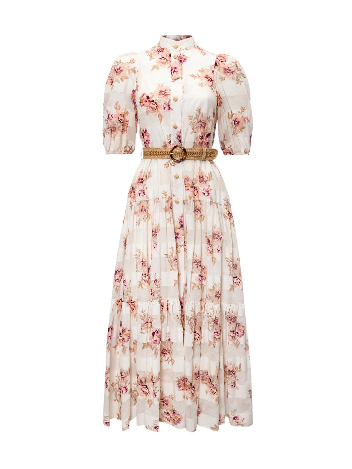 Платье ZIMMERMANN 0 белое розовые цветы холщовый пояс сорочка хлопок