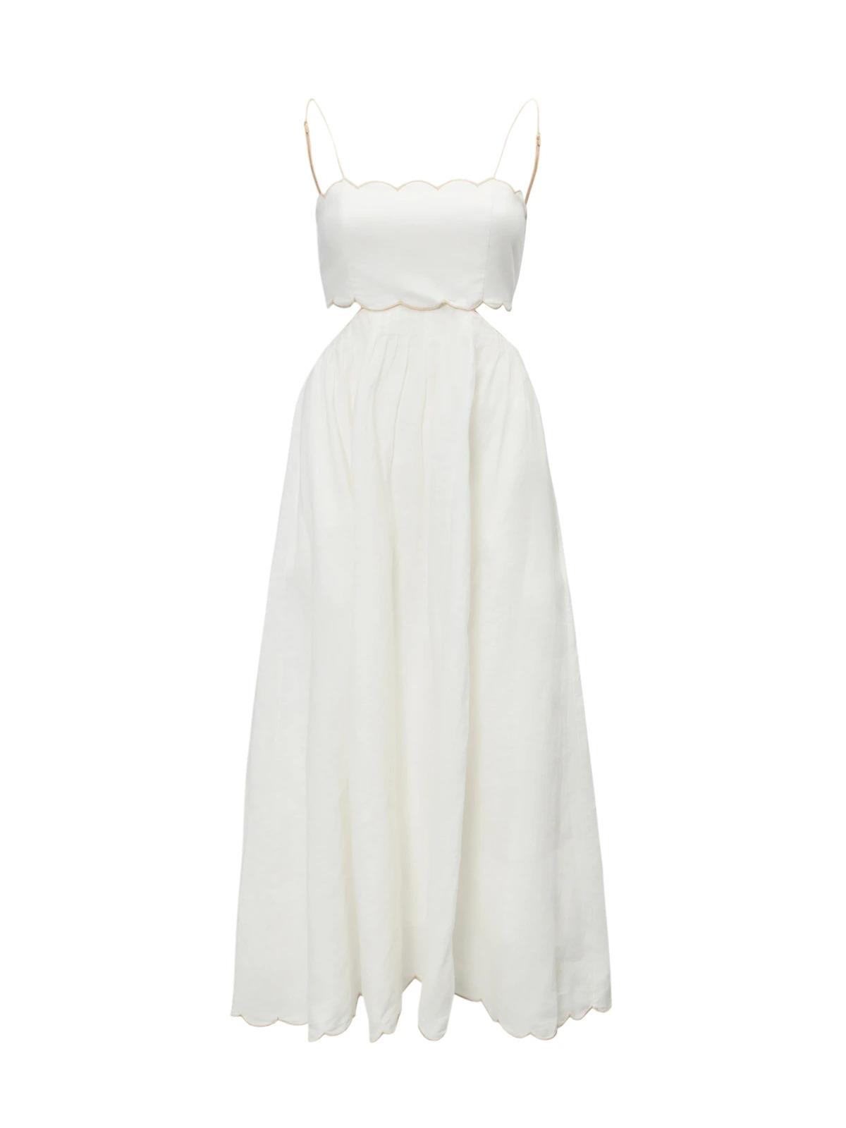 Платье ZIMMERMANN 0 белое лен открытые бока плечи шнуровка на спине